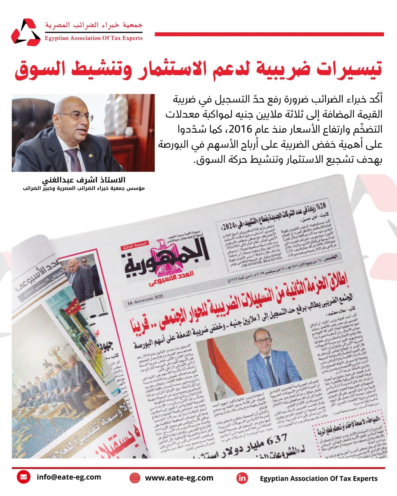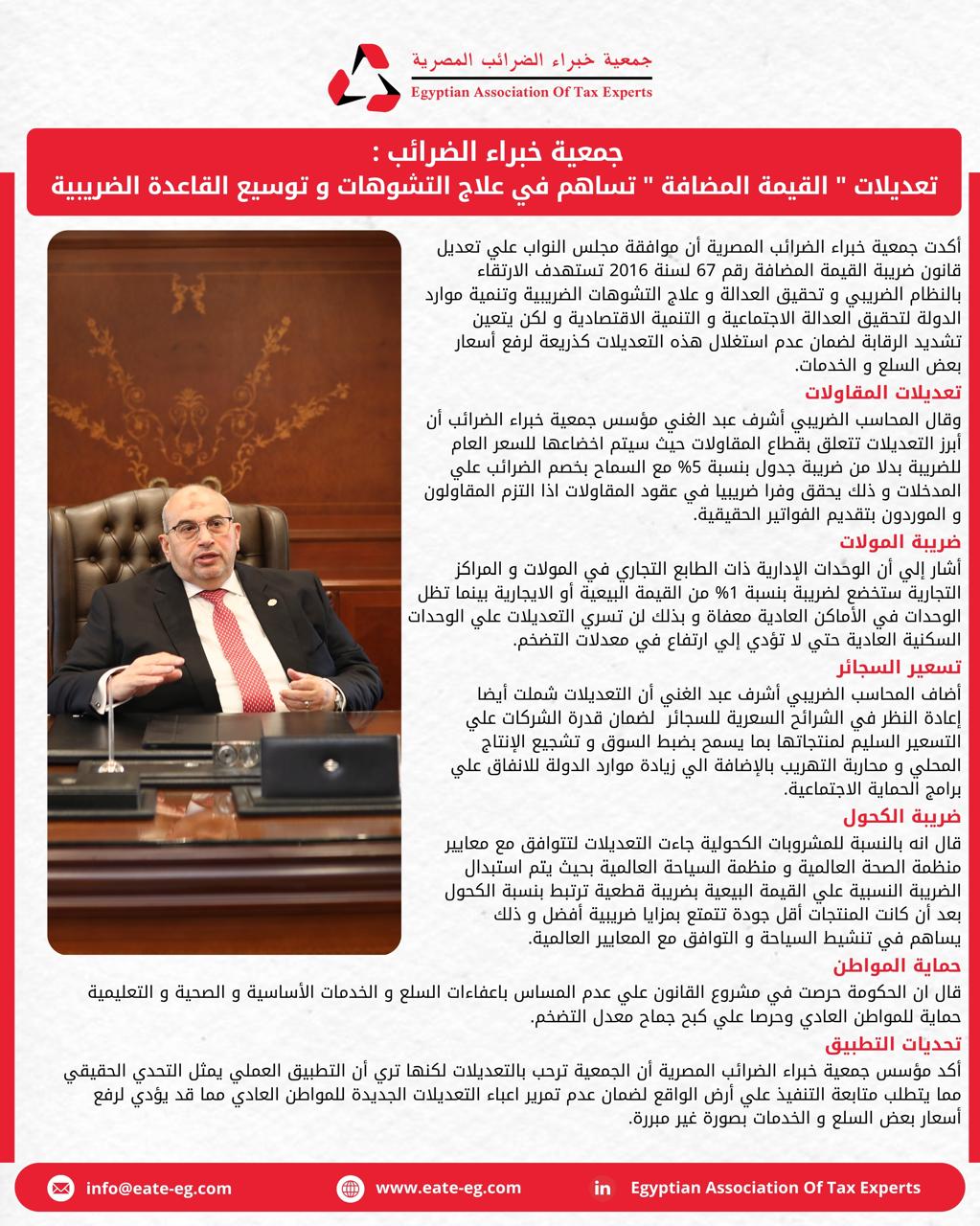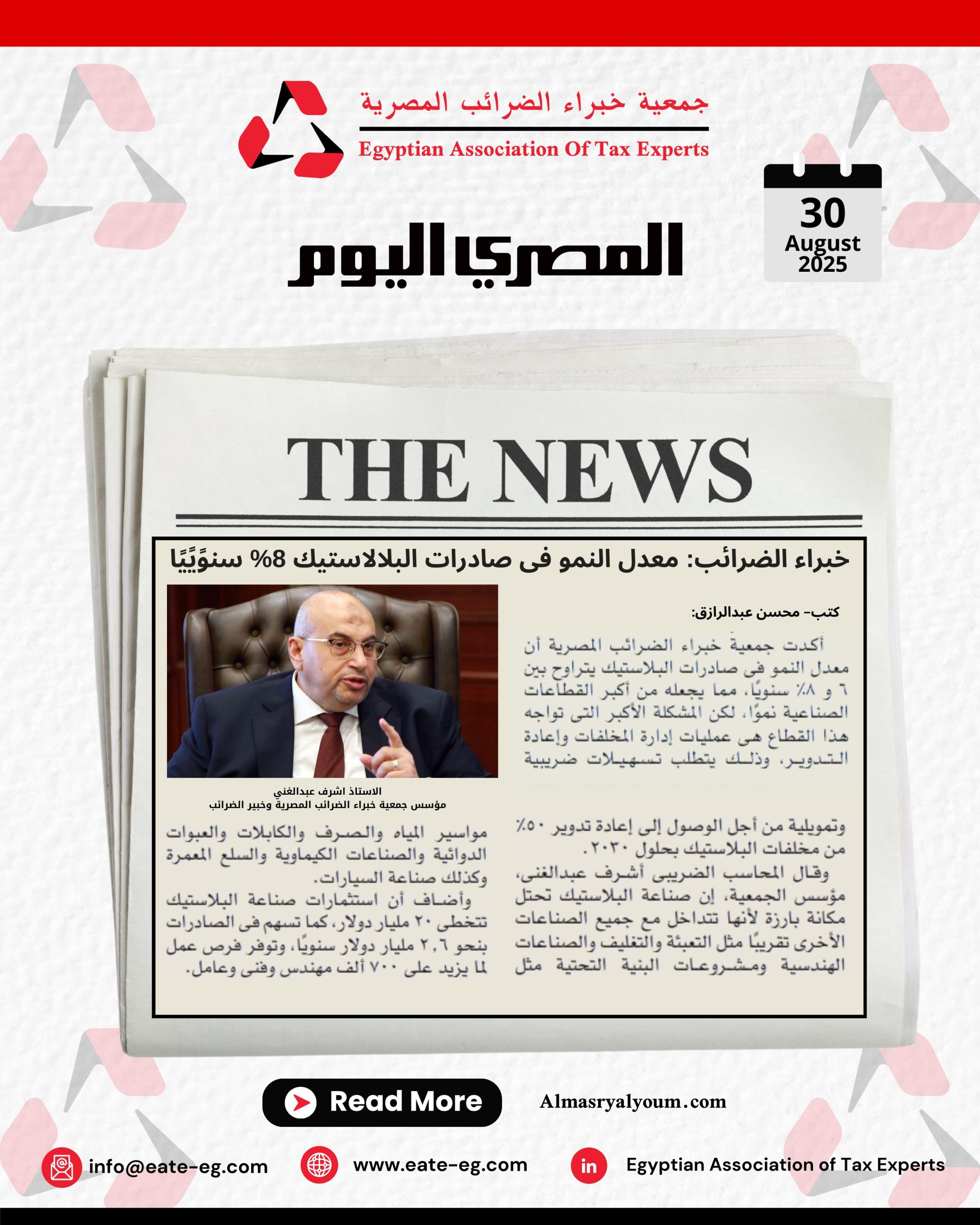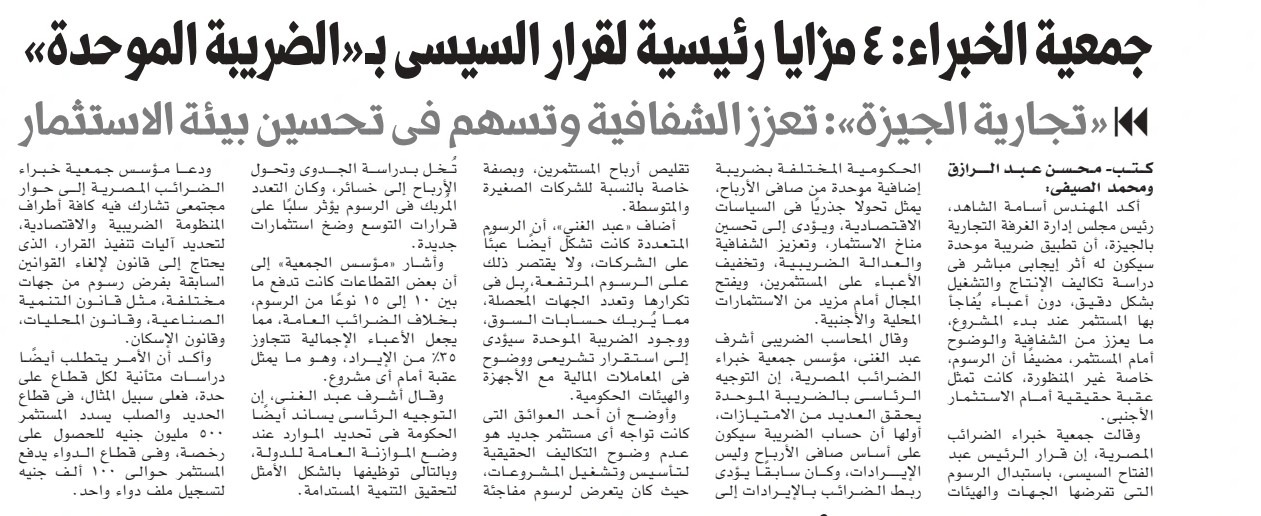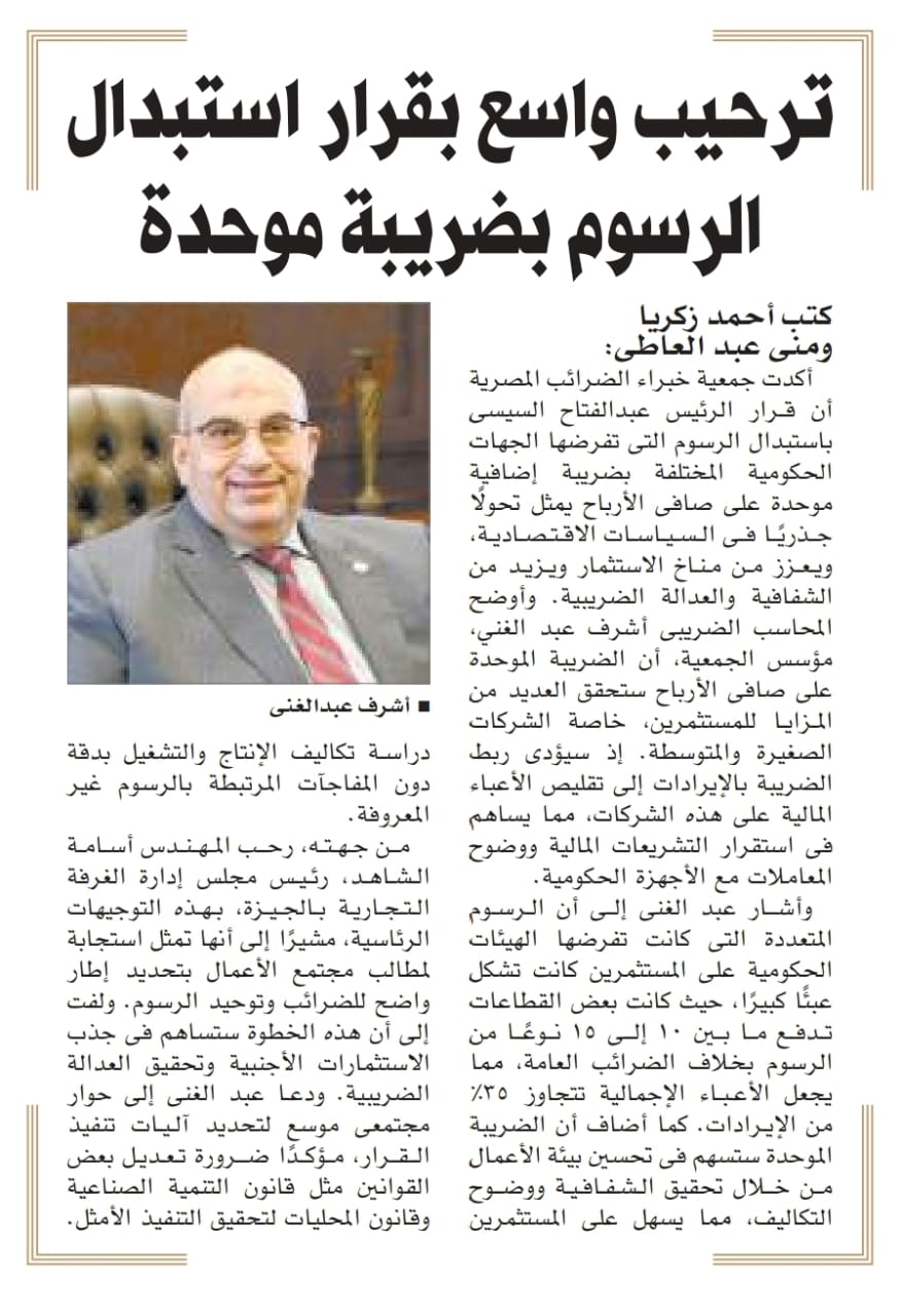 خبراء الضرائب : الأولوية في كارت ” تميز ” للفحص السنوي و الحصول علي مخالصة نهائية للملتزمين ضريبيا رحبت جمعية خبراء الضرائب المصرية بالمزايا التي