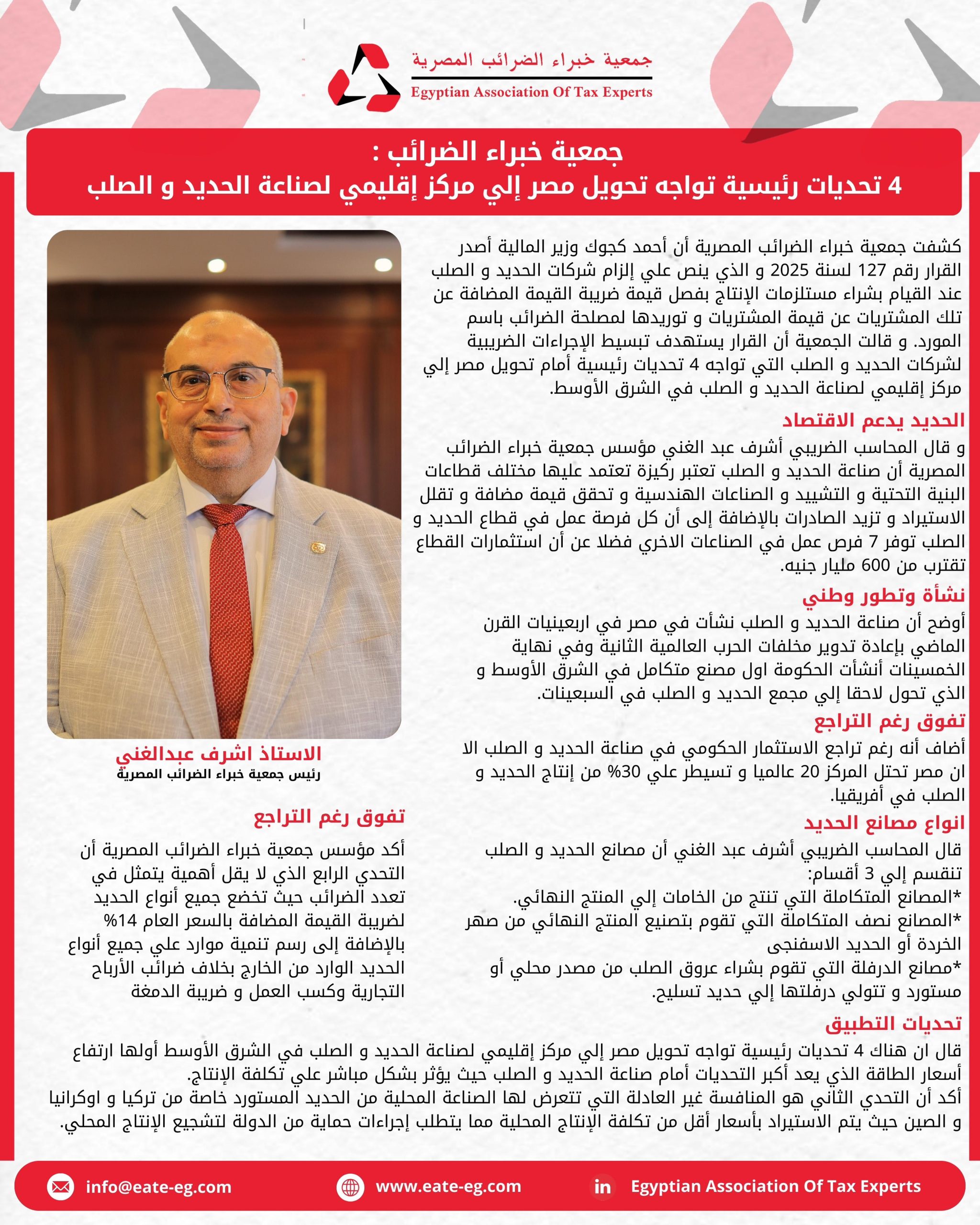خبراء الضرائب: الذهب والثروات التعدينية ” كنز مهمل ” و التطوير يحتاج إلى تيسيرات ضريبية و تمويلية وصفت جمعية خبراء الضرائب المصرية الثروات التعدينية في